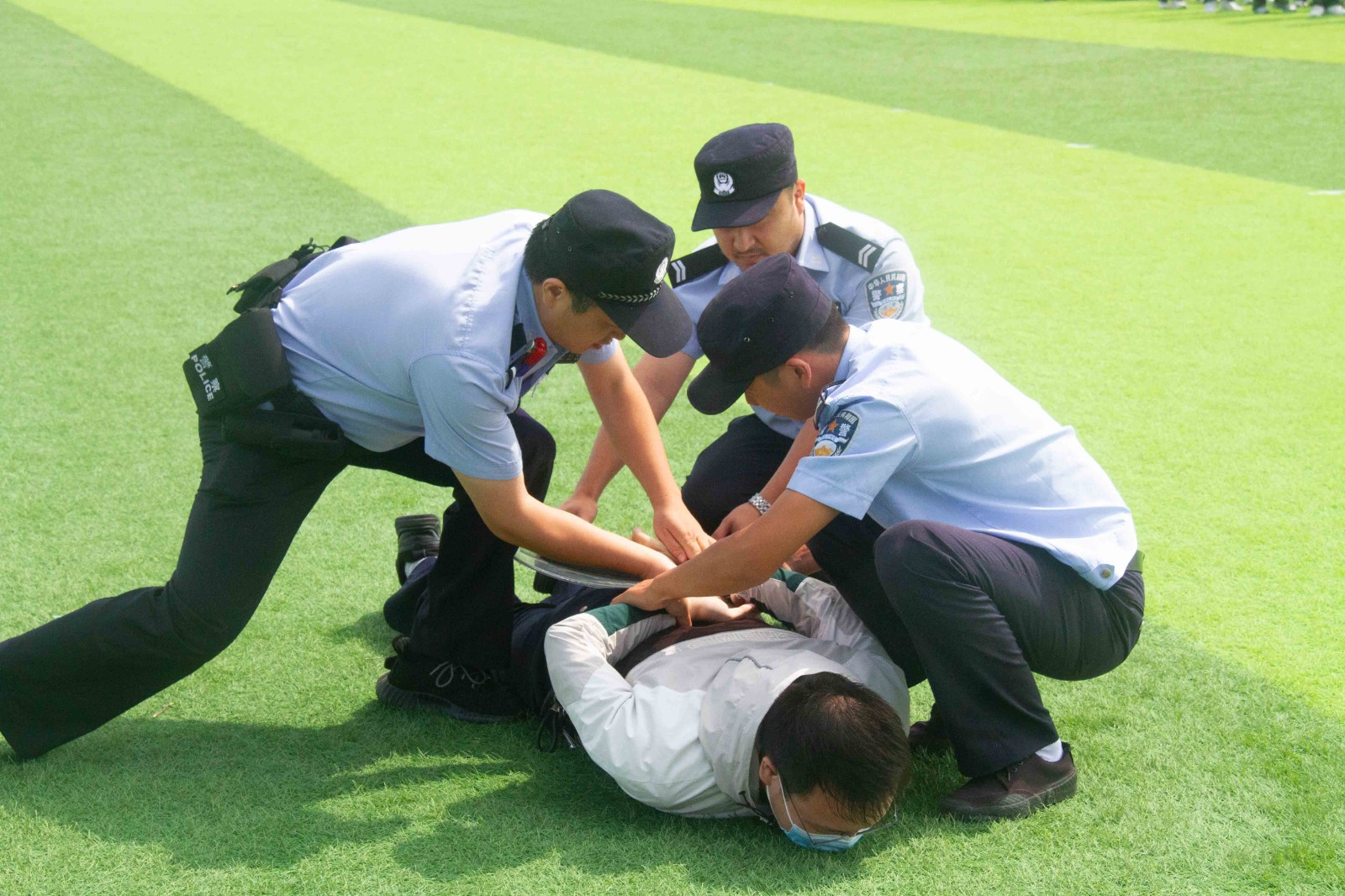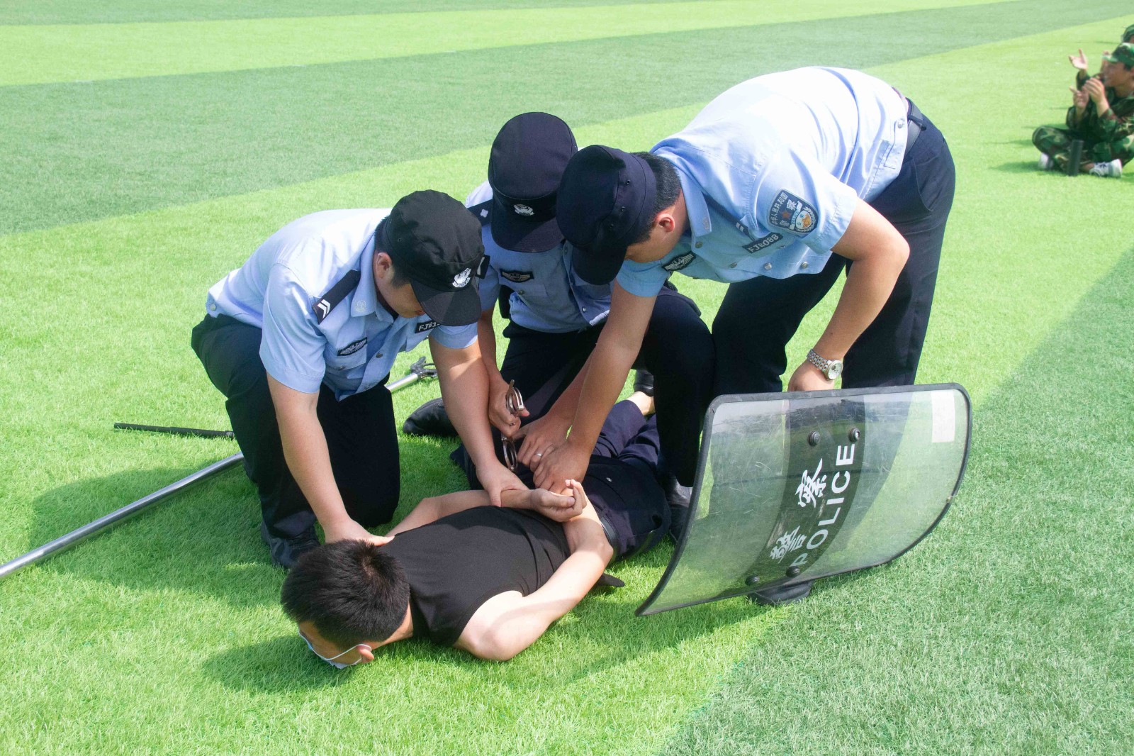 为切实提高师生反恐防暴应急能力,演练前,民警向大家传授反恐防暴知识,讲解了应急过程中的注意事项及攻防技能,以现场教学、亲身体验、模拟实战、随机应变等方式,对参训人员进行了示范操作和重点指导。并强调大家在遇到突发暴恐事件时一定要沉着冷静、随机应变。本次演练现场模拟事发场景,两名手持凶器的“暴徒”强行入校,面对突发情况,学校立即启动应急预案,各部门迅速到位,各司其职,学校工作人员第一时间请求增援、上报领导小组,并拨打报警和救护电话。民警第一时间奔赴现场一起全力制服“暴徒”。整个演练活动按计划圆满完成,达到了预期的效果。