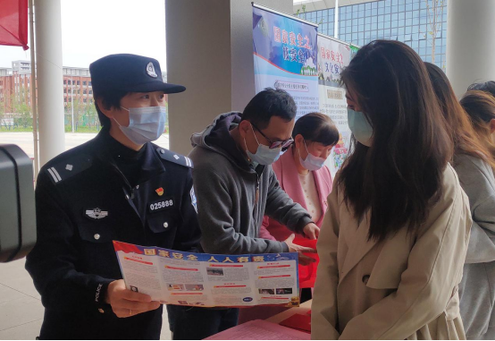 活动现场,通过悬挂宣传条幅、设置展板,图文展示、现场解说、发放宣传单等形式,向师生员工宣传《中华人民共和国国家安全法》、《中华人民共和国反间谍法》、《中华人民共和国反间谍法实施细则》等法律法规,普及了防恐、防诈骗、防邪教等知识。