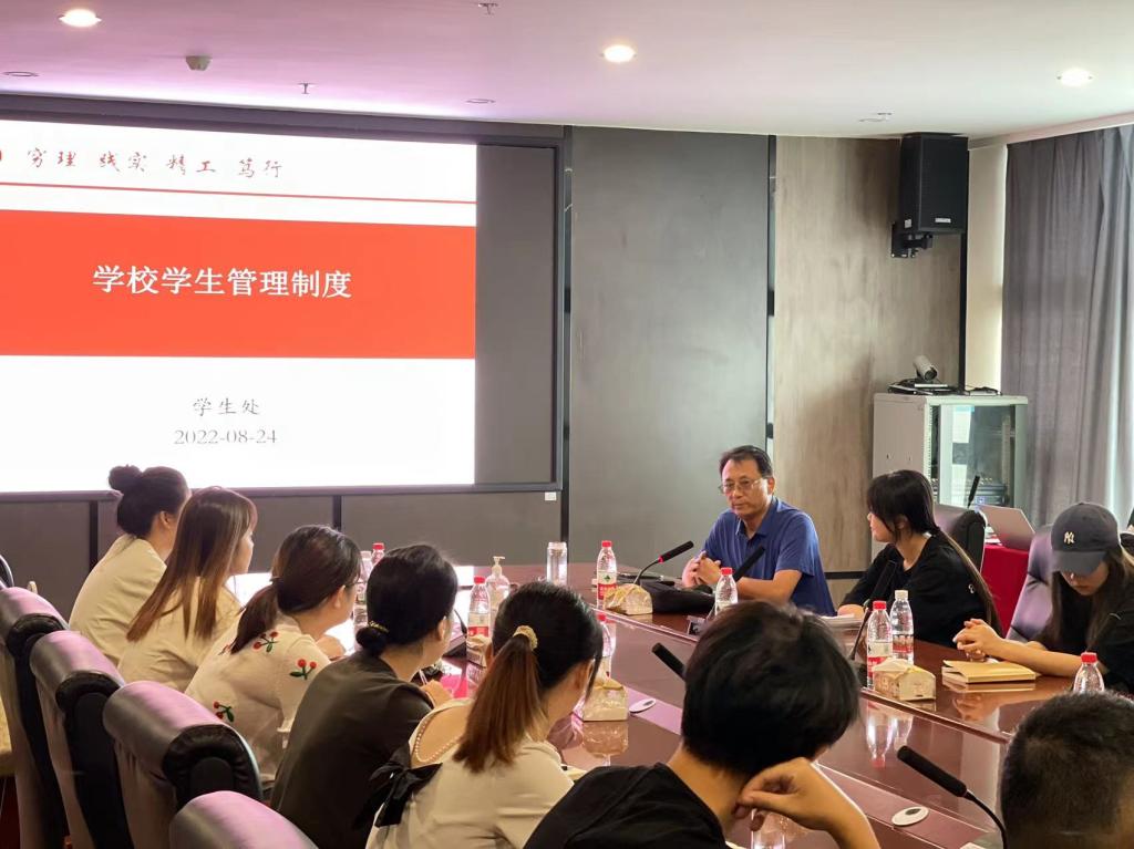 根据学校新教师培训工作安排,我校于8月24日、26日在艺术楼205办公室举行了2022年新入职辅导员岗前培训,全校18名新入职辅导员参加了培训。培训会由学生处处长孙增响主持。