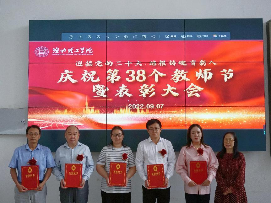 校长杨兵在庆祝大会上发表了热情洋溢的致辞,向淮北理工学院广大教师致以节日的问候,向受到表彰的优秀教师、优秀教育工作者、师德先进个人表示热烈祝贺,向刚加入淮北理工学院的新教师表示诚挚欢迎。总结了一年来学校教育教学工作的突出成绩,代表学校党委、行政对广大教师在推动学校快速发展中做出的贡献,表示衷心的感谢。希望老师们坚持立德树人,为党育人,为国育才,为淮北理工学院的事业发展继续努力工作,创造更辉煌的业绩。