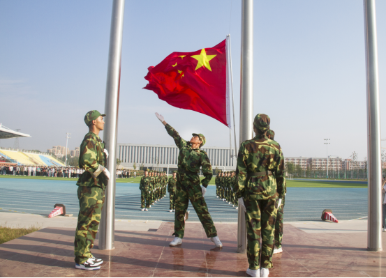2022级新生开学典礼暨军训总结大会伴随着冉冉升起的五星红旗,在雄壮的中华人民共和国国歌中拉开序幕。