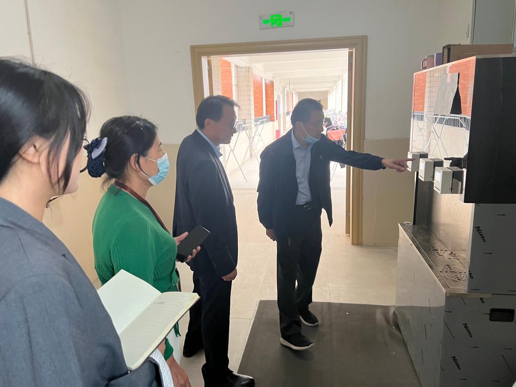 在走访过程中,朱德顺与同学们进行了亲切交流,深入宿舍排查安全隐患,详细询问学生生活情况、学习情况及毕业打算等,了解学生宿舍卫生、消毒和通风情况。朱德顺叮嘱学生要严格遵守疫情防控期间校园管理要求、做好疫情防控常态化下的自我管理和个人防护,养成良好的生活卫生习惯,注意身体健康,保持积极的心理状态,共同营造安全有序的校园环境。