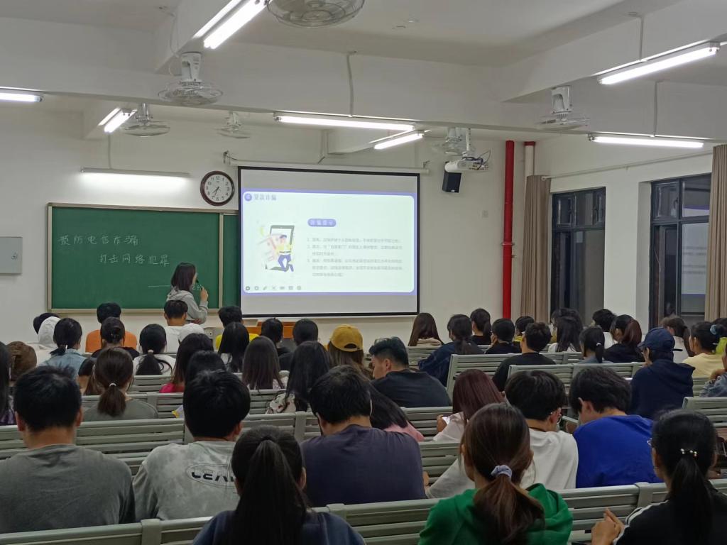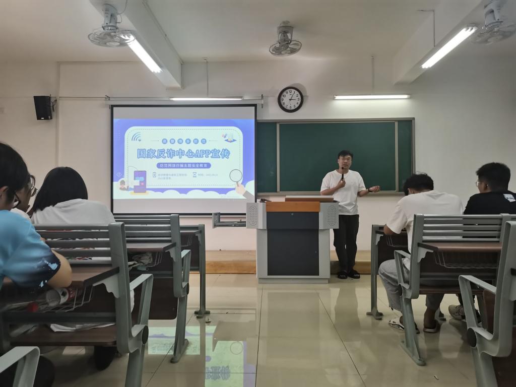 在新生军训期间,学生处将省教育厅印制的《谨防电信网络诈骗一封信》分发至每位新生。各二级学院利用新生军训,开展了集中反诈宣讲活动,并组织各班级开展主题教育班会。班会上,各位辅导员引导学生下载国家反诈中心APP、关注国家反诈中心官方政务号,并通过播放反诈宣传视频、真实案例分析等方式,揭露常见的诈骗手段,宣传反电诈相关知识。