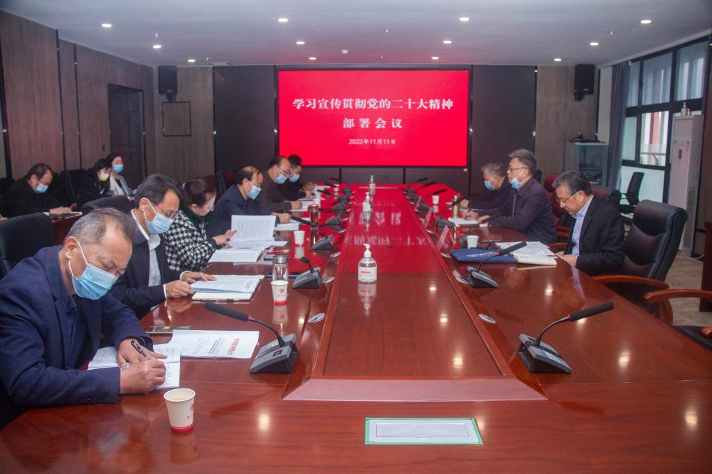 11月11日上午,我校在艺术楼二楼会议室召开学习宣传贯彻党的二十大精神工作部署会议,校领导、各党总支书记、各部门、各二级学院负责人、各党支部书记、各团总支负责人及全体辅导员参加会议。校长杨兵主持会议。