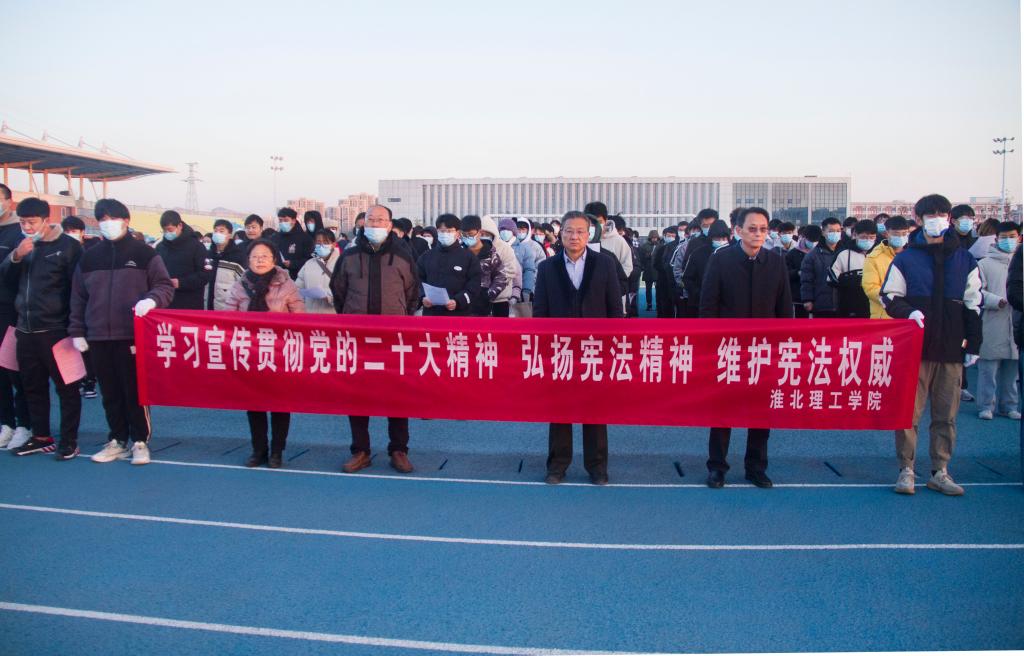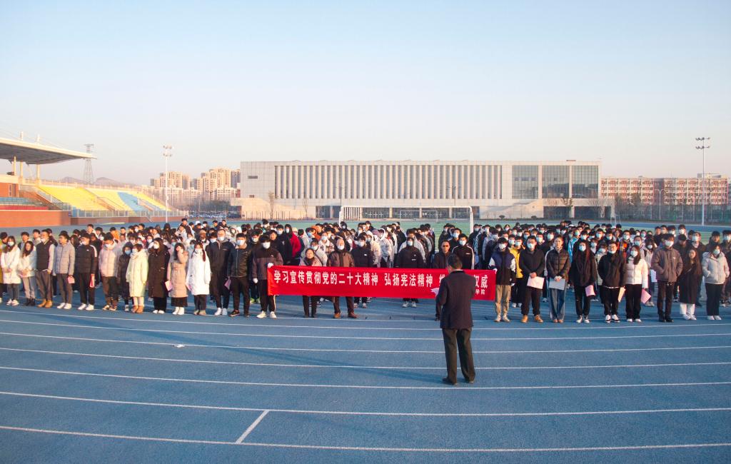 上午7:20,在升旗仪式之后,“宪法晨读”活动正式开始,在学生处张敬茹同志的领读下,校党委书记督导专员朱德顺,党建办、学生处等部门负责人,党支部书记和辅导员及300余名师生进行“宪法晨读”。