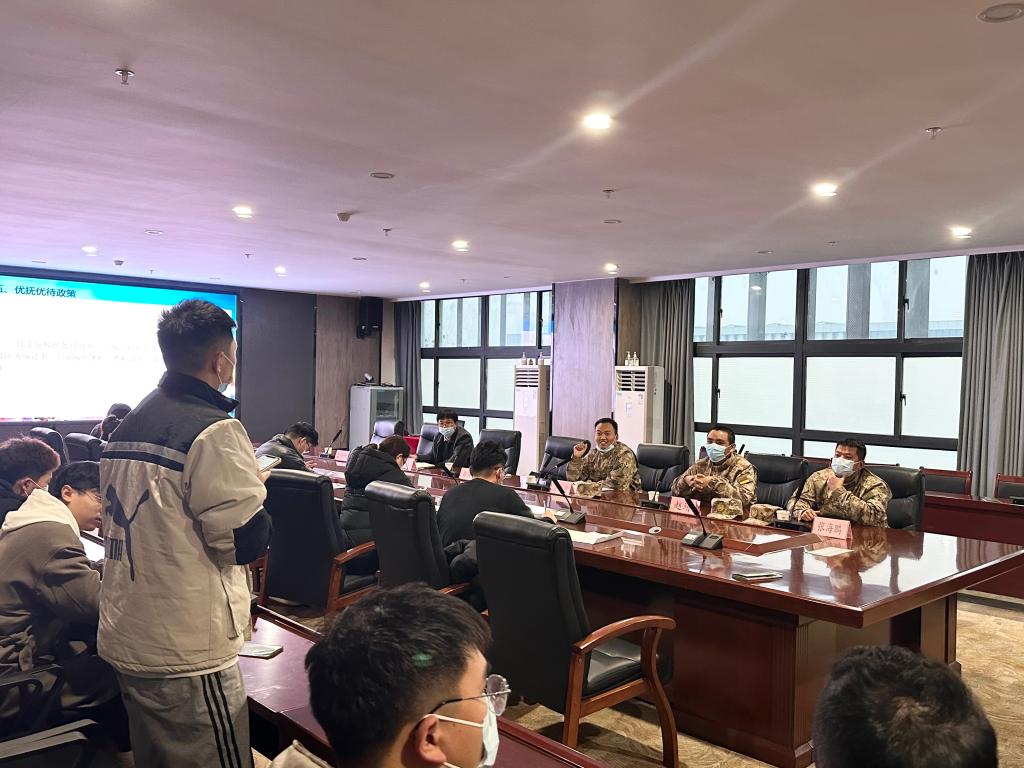 随后,杜集区人民武装部参谋张海鹏对今年的征兵政策进行解读和介绍,主要针对应征报名、体格检查、政治考核、预定兵管理、优抚优待政策五个部分展开介绍。