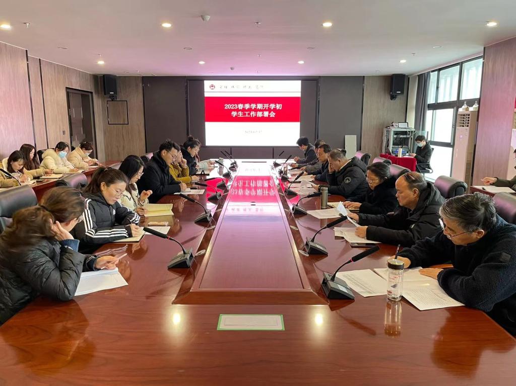 2月17日上午,我校在艺术楼二楼会议室召开2023年春季开学初学生工作部署会,副校长郑来纪、学生处、后勤保卫处负责人、各二级学院党总支书记、副书记、书记助理及全体辅导员参加会议。会议由郑来纪主持。
