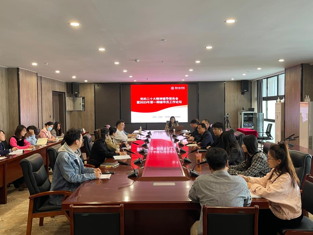 宣讲会后,学生处处长孙增响作总结发言。他强调,学校以此次宣讲会为契机,召开本学年第一期辅导员工作论坛,目的在于使全体辅导员的思想和行动统一到党的二十大精神上来,切实把党的二十大精神转化为工作思路、具体对策和实际行动,更好地做好学生的教育、管理和服务工作。