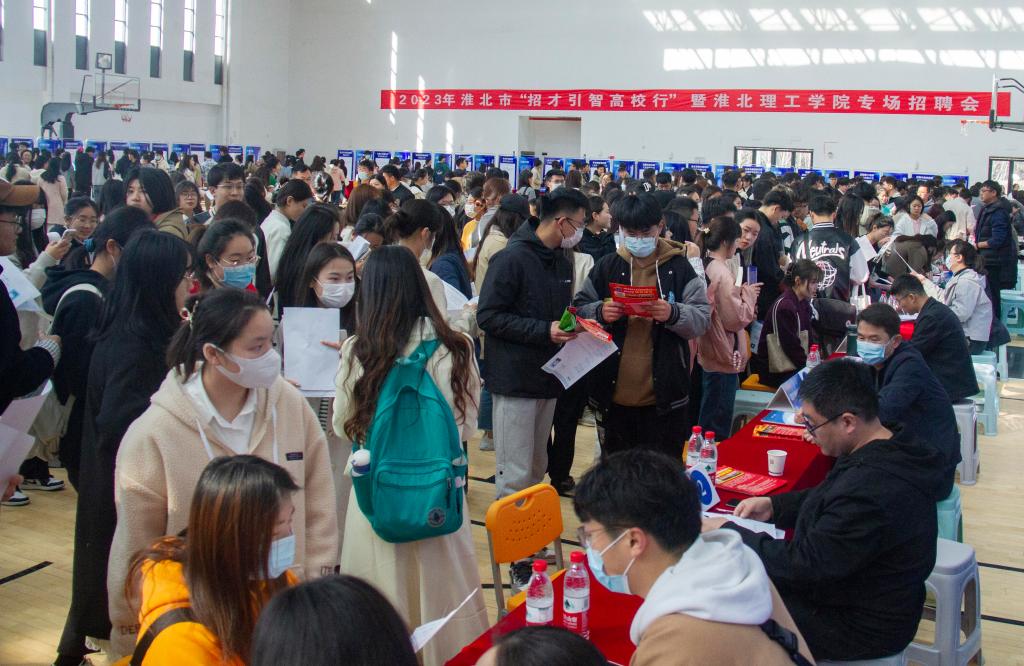 据悉,本次招聘会由中共淮北市委、淮北市人民政府主办,中共淮北市委组织部、淮北市人力资源与社会保障局、杜集区人民政府、淮北理工学院承办,淮北市经济和信息化局、淮北市教育局、淮北市工商业联合会、淮北市传媒中心协办,吸引了皖北煤电集团公司、安徽省矿业机电装备有限责任公司、淮北淮海建设工程有限责任公司等近50家重点企业参与,提供就业岗位2500多个。此次招聘会需求岗位与学校专业设置匹配度较高,岗位数较多,学校1200余名毕业生参加现场招聘活动,备受毕业生关注与青睐。