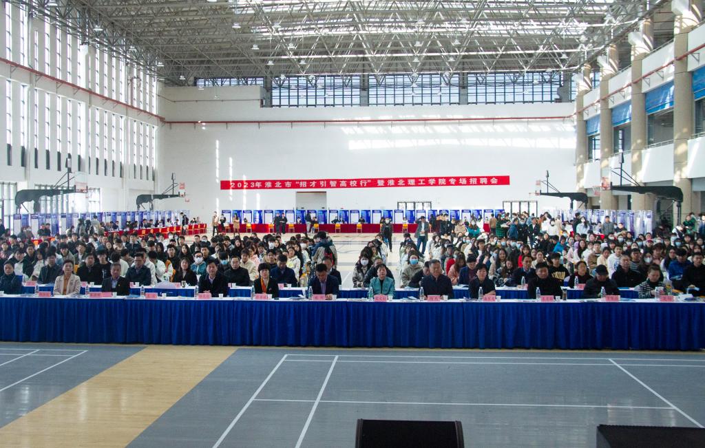 为深入贯彻党中央、国务院和省委、省政府“稳就业”“保就业”决策部署,积极做好高校毕业生就业工作,抓住高校毕业生春招“黄金期”,搭建用人单位与高校毕业生充分洽谈交流平台,积极为淮北市发展输送应用型人才,3月14日上午,“淮有梦想 智引未来”--2023年淮北市“招才引智高校行”招聘活动在学校成功举办。淮北市人大常委会副主任张香娥,淮北市政府副市长姚珂,淮北市人大社会建设工作委员会主任孙光伦,淮北市人民代表大会社会建设委员会副主任、民盟市委会副主委宋文红,市政府副秘书长王江等市领导及其他单位负责人莅临活动现场。校长杨兵,校党委书记朱德顺,副校长汪建利、郑来纪,各二级学院院长、书记、副书记、书记助理、毕业班辅导员,学生处(就业处)工作人员及2023届毕业生共同参加。开幕仪式由王江主持。