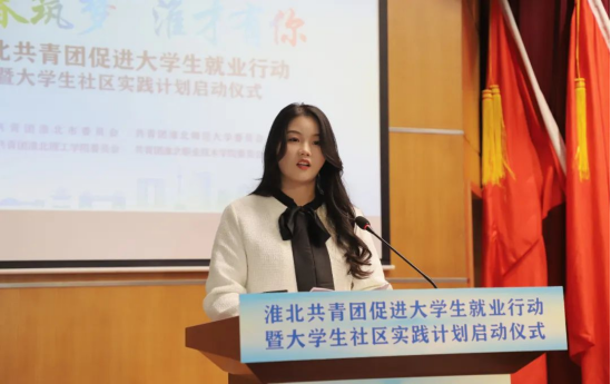 淮北理工学院李亦冰作为学生代表发言。她说,到基层一线社会实践是我们深入基层、了解社情民意、增长社会经验、锻炼实践本领最好的课堂。感谢此次实践活动为我们青年学子搭建了接触社会、锻炼自我、展示自我的平台。