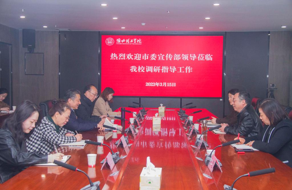 3月15日,淮北市委宣传部副部长、讲师团团长丁傲然一行莅临我校调研指导工作。校党委书记朱德顺及相关部门负责人陪同调研。朱德顺代表学校对丁傲然一行的到来表示热烈欢迎,对市委宣传部长期以来对学校的支持和帮助表示感谢。并详细介绍了学校教学基础设施建设、教学管理、师资配备、专业设置、办学规模、招生数量等情况。丁傲然一行对此次调研目的进行介绍,希望与学校加强合作,在应用对策研究方面得到学校的智力支持,并表示市委宣传部将一如既往的对学校建设与发展提供支持和帮助。随后双方就感兴趣的议题进行深入探讨。学校方表示将认真落实市委宣传部部署的相关工作,为地方经济建设发展提供智力支持。