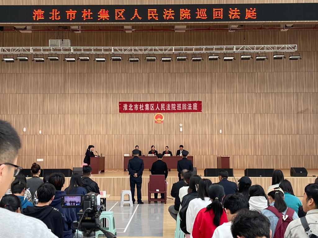 4月27日上午,淮北市杜集区人民法院巡回法庭在我校公开开庭审理了一起涉嫌帮助信息网络犯罪活动罪案件。淮北市政协委员、副校长郑来纪,淮北市人大代表、学校基建处副处长黄圻,以及我校200余名师生现场旁听了庭审。
