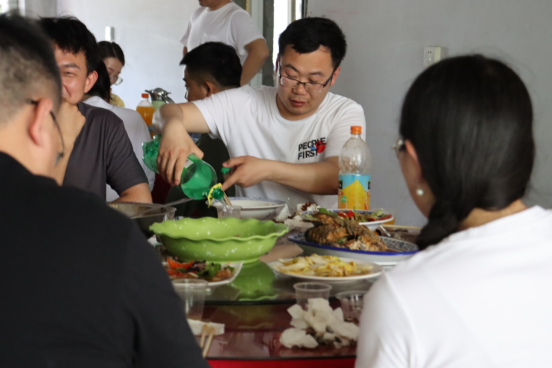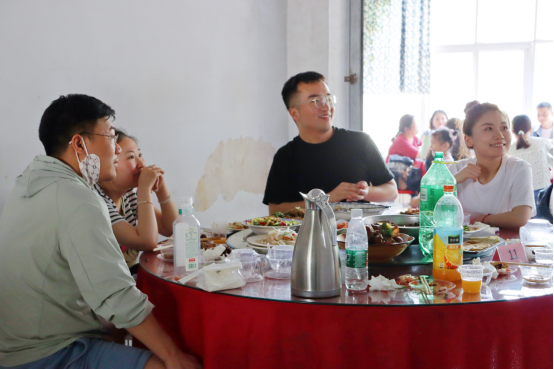 中午,经过近三小时的游玩,老师们逐渐体力不支,又累又饿。山下景区门口,校工会提前为大家准备好了午餐。下山后,老师们以教研室为单位,集合后统一前往饭店,享用了丰盛的农家菜,品尝了享誉黄淮的地方名吃皇藏峪蘑菇鸡。