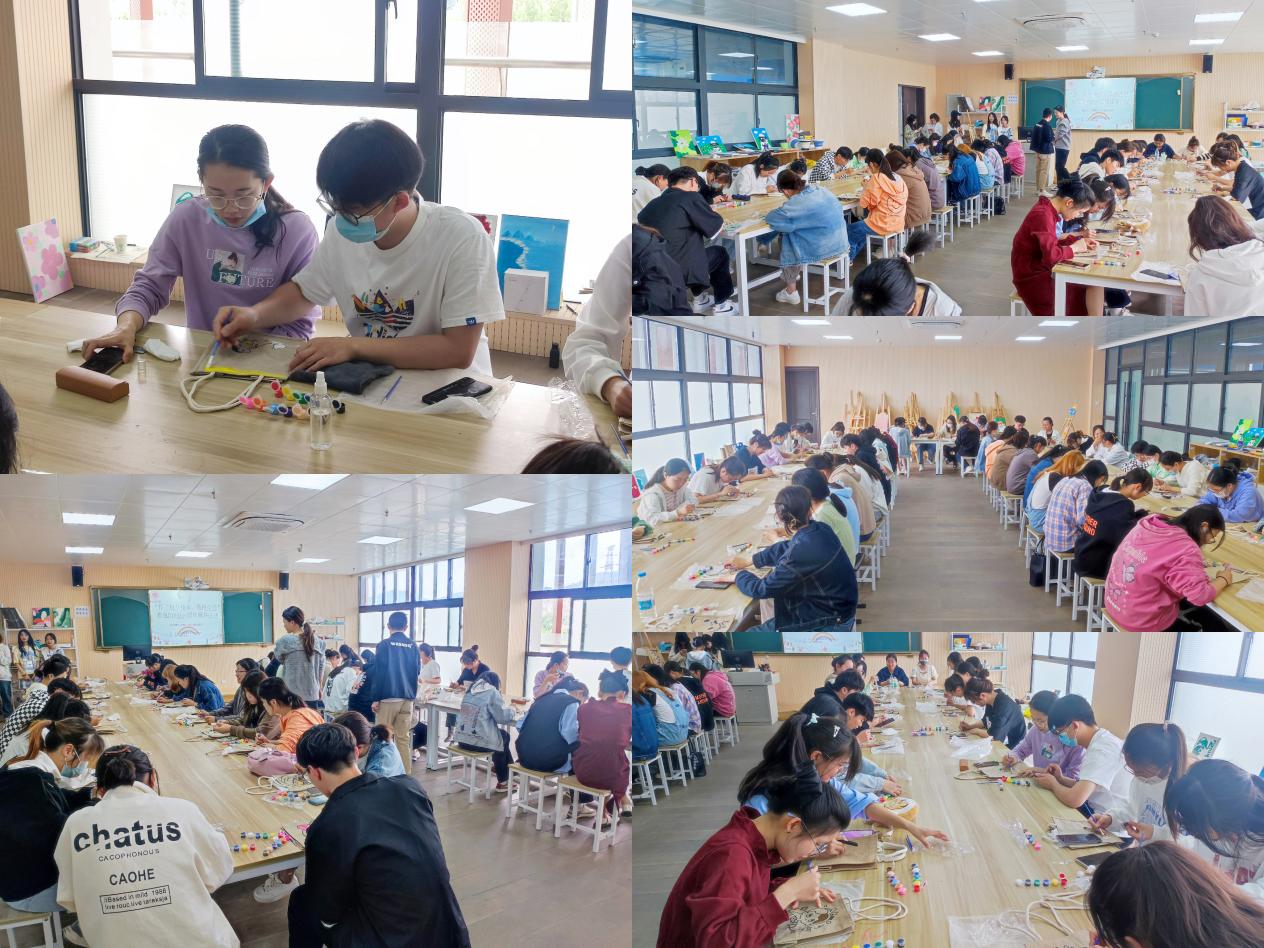 活动开始,首先由工作人员为参加活动的同学们分发布包、颜料、画笔等创作工具,引导同学们在创作、绘画过程中充分发挥想象力,利用现场提供的材料设计构思,将创意与思考结合,妙笔生花,用鲜艳的色彩和图案绘制出许多生动作品,营造了良好的校园文化氛围,对舒缓学习压力具有重要作用。