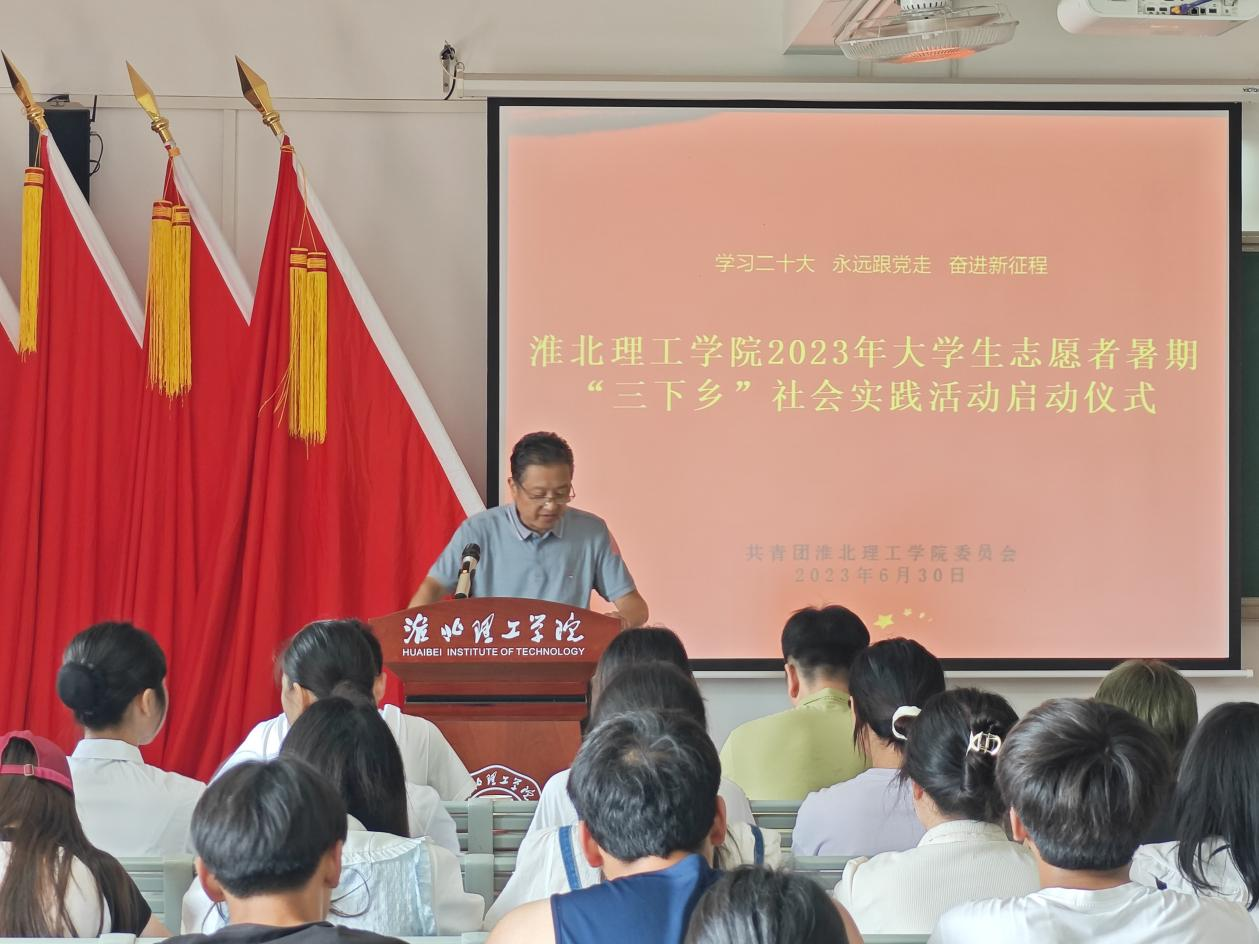 为深入学习宣传贯彻习近平新时代中国特色社会主义思想,贯彻落实习近平总书记关于青年工作的重要思想,引导和帮助广大青年学生上好与现实相结合的“大思政课”。我校于6月30日下午在二教422教室举行2023年暑期“三下乡”社会实践活动启动仪式。校党委书记、督导专员朱德顺、学生处处长孙增响、校团委和院团总支书记出席仪式。会上,校党委书记、督导专员朱德顺就开展好2023年暑期“三下乡”社会实践活动提出三点要求:一是严格指导管理,确保安全有序;二是保持谦虚谨慎,学会虚心请教;三是充分发挥所学,务必取得实效。将所学知识与基层工作经验相结合,学会多看、多思、多问。