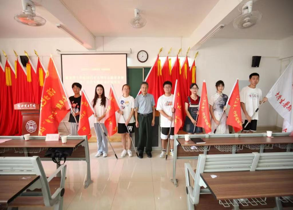 仪式最后,校党委书记、督导专员朱德顺为学生代表授旗,正式拉开淮北理工学院2023年暑期“三下乡”社会实践活动的序幕。