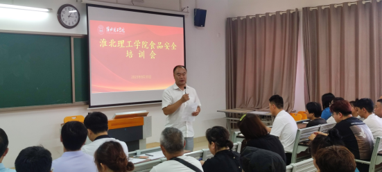 为进一步加强校园食品卫生安全工作,强化安全意识,规范操作行为,切实保障广大师生饮食安全。8月30日下午,淮北理工学院开展了校园食品安全培训。学校食堂全体员工,物业、超市、商业街食品商户,共70余人参加,副校长郑来纪出席会议。