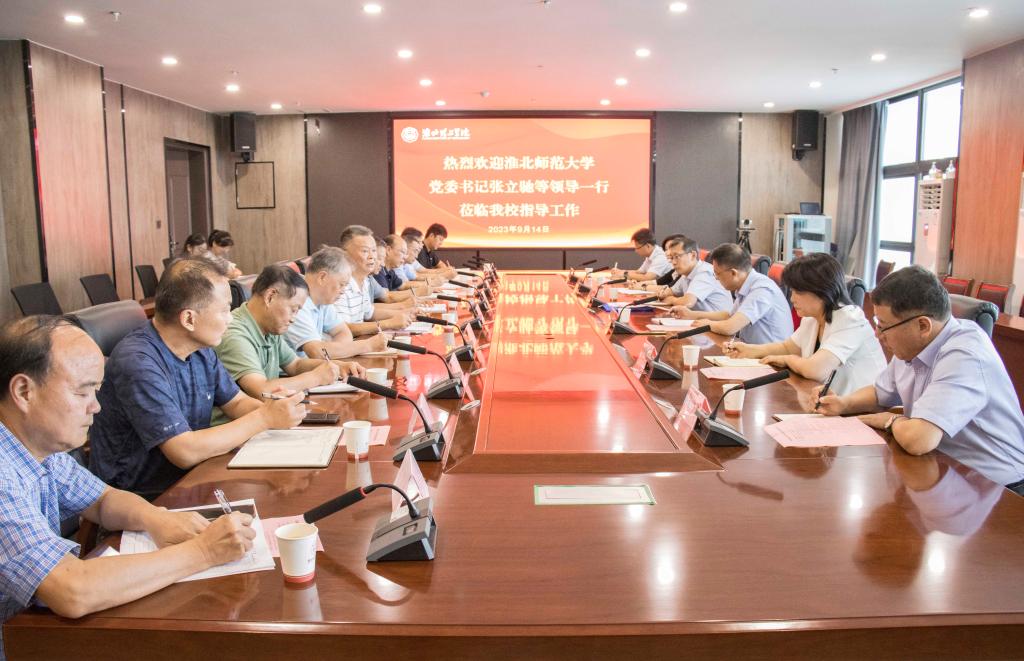 为进一步加强校际间合作共建,探讨办学经验做法,推动两校教育教学高质量发展,9月14日,淮北师范大学党委书记张立驰等领导一行来我校调研指导工作。校长杨兵、党委书记朱德顺等领导热情接待了张立驰一行。