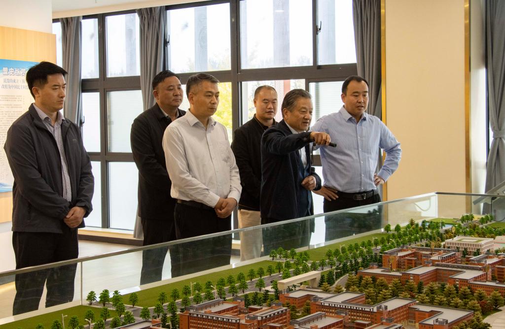 党委书记朱德顺代表校领导班子对尹农纲一行表示热烈欢迎,随后在艺术楼二楼展览馆依据学校沙盘向区领导详细介绍了学校基础设施、在建工程及二期规划工程等方面的建设施工进度,朱德顺表示,在市委市政府和区委区政府的大力支持下,学校自转设以来发展进程稳步推进,取得了较好的成绩和新的突破。在听取汇报后,尹农纲对我校的发展情况给予了高度评价,重点围绕学校二期工程建设、学校周边配套设施规划、交通及食品安全保障等方面作进一步了解,要求区相关部门和高岳街道提供工作支持,进一步促进学校建设发展平稳有序。
