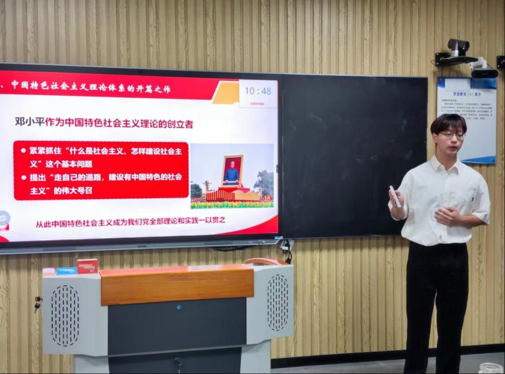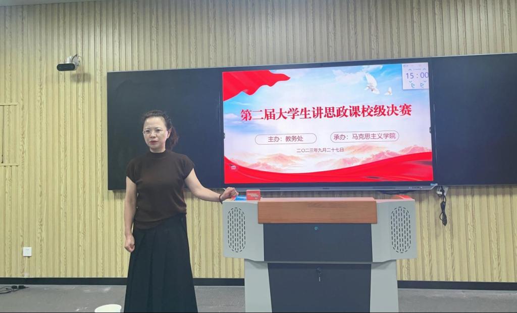 为深入学习贯彻习近平新时代中国特色社会主义思想,深化思政课改革创新,全面推进“大思政课”建设,落实拓展大学生参与思政课教学实践教学途径。根据《中共安徽省委教育工委关于组织开展第二届大学生讲思政课展示活动的通知》文件要求,在学校党委的高度重视及安排部署下,由教务处主办,马克思主义学院承办的第二届大学生讲思政课比赛校级决赛于9月27日在一教210智慧教室顺利举办并取得圆满成功,并经过精心的专家指导和材料把关于10月15日上报6组同学参加省级片区赛。