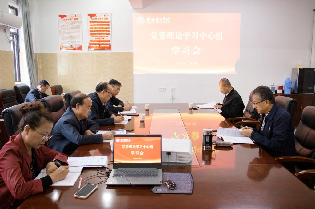 10月20日上午,学校召开党委理论学习中心组理论学习研讨会。校领导、校党委委员、校纪委委员参加会议,会议由校党委书记朱德顺主持。
