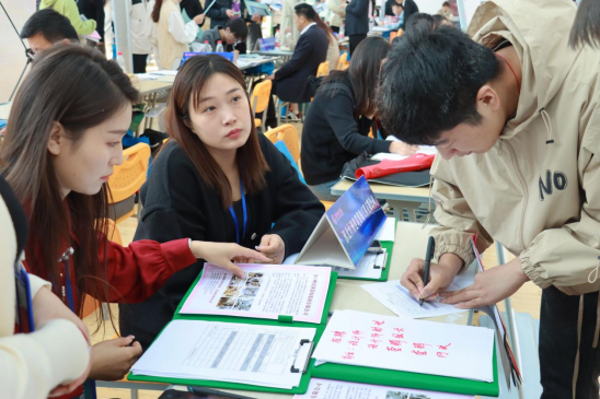 招聘会现场,毕业生手持个人简历和推荐表,通过阅读企业展报、介绍手册等方式来了解用人单位的招聘要求以及相关的福利待遇,积极向企业负责人询问相关问题,寻找专业对口的合适企业进行面试交流,向单位负责人展示自己的能力和优点。用人单位在现场开展专场宣讲会,为毕业生详细讲解岗位的简历设计、聘用要求和薪资待遇。本次招聘会为毕业生和用人单位搭建了双向交流的平台,帮助毕业生初步了解当前就业形势,掌握招聘信息和面试技巧。