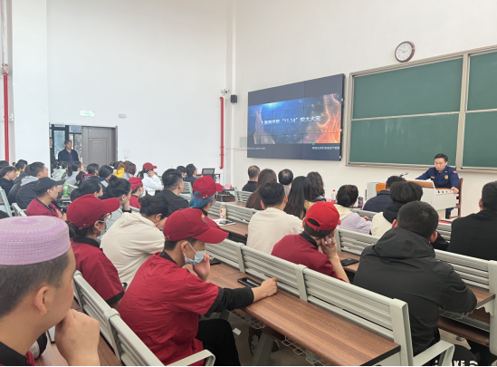 王站长以《校园消防安全培训》为题,通过多媒体演示近年来全国高校发生火灾案例,警示避险防灾、应急自救,同时介绍了火灾基本逃生技巧以及灭火器如何使用。