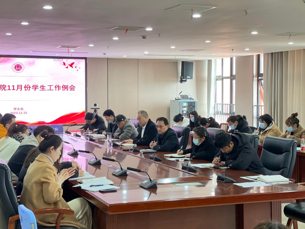11月15日上午,我校在新行政楼814会议室召开11月份学生工作例会,副校长郑来纪、学生处(团委)、后勤保卫处负责人、各二级学院党总支副书记、书记助理及全体辅导员参加会议。会议由郑来纪主持。