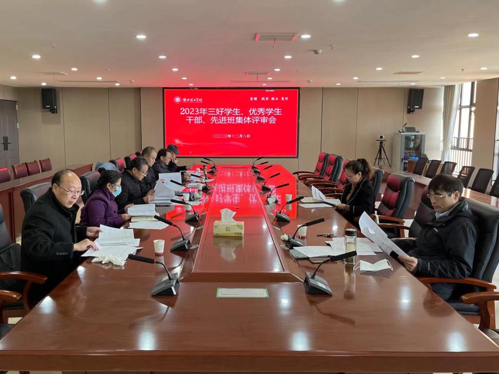 12月8日上午,我校在新行政楼会议室召开2022-2023学年度“三好学生、优秀学生干部、先进班集体”评审会,学校奖助学金评审委员会委员参加了评审会。会议由校党委书记朱德顺主持。