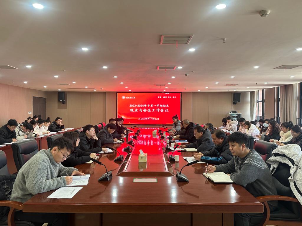 1月3日,学校在行政楼814会议室召开2023-2024学年第一学期期末就业与安全工作会议。副校长郑来纪,学生处、后勤保卫处负责人、各学院党总支副书记、书记助理及全体辅导员参加了会议。会议由党委书记朱德顺主持。