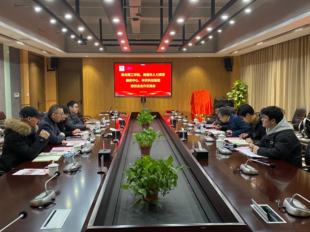1月9日,在南通市中天科技集团,朱德顺一行参观了集团展厅和中天科技储能公司。之后,在中天科技集团会议室,学校、南通市人力资源服务中心、中天科技集团三方举行了校地校企合作座谈会。