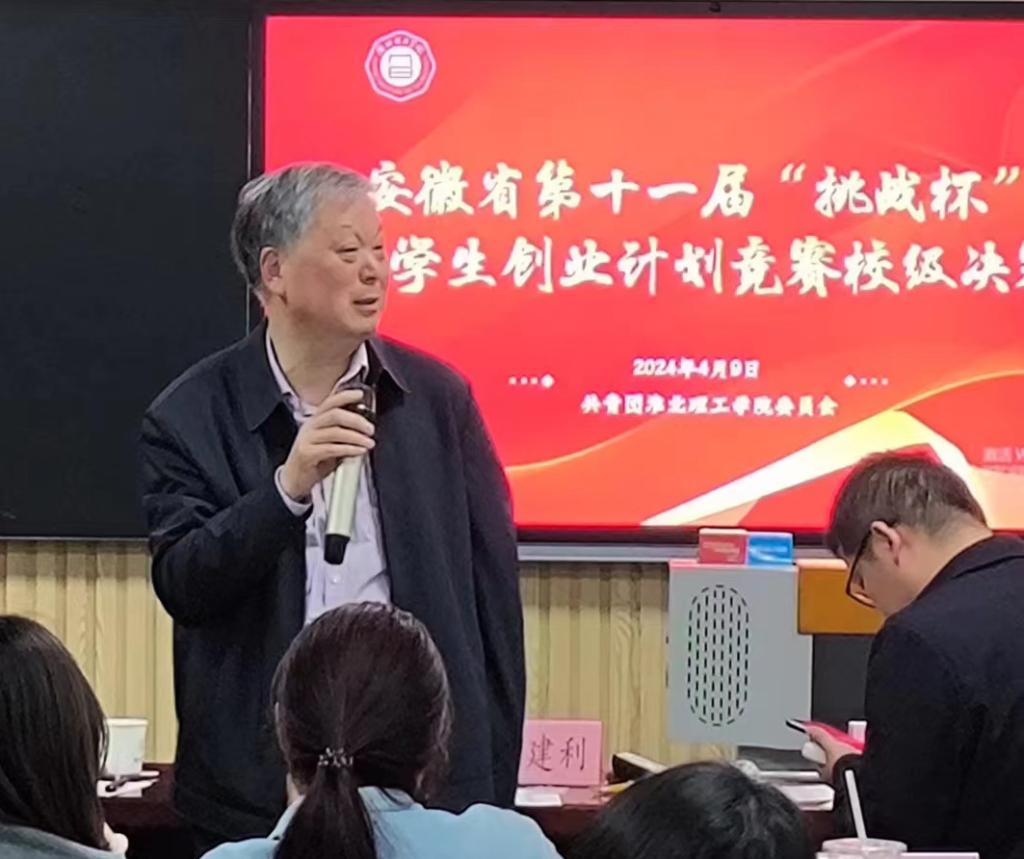 为培养我校学生创新、创意、创造、创业意识和能力,更好选拔作品参加第十一届“挑战杯”安徽省大学生创业计划竞赛。4月9日,学校举办“挑战杯”校级决赛。副校长汪建利出席,教育部互联网+、“挑战杯”国赛评委许飞教授和学生处(团委)、科技处、教务处、各二级学院负责人担任评委。各二级学院团总支负责人、“挑战杯”项目指导教师及参赛学生到场观摩赛事。