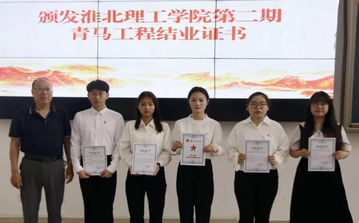 党委书记朱德顺、党建办主任付金沐、学生处处长孙增响分别为第二期“青马工程”优秀学员代表颁发结业证书。