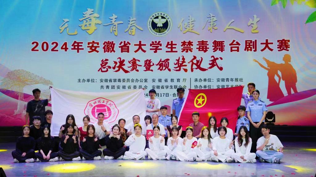 6月17日上午,“无毒青春,皖美人生”2024年安徽省大学生禁毒舞台剧大赛总决赛成功举办。大赛由安徽省禁毒委员会办公室、安徽省教育厅、共青团安徽省委员会、安徽省学生联合会共同联合主办,我校选送作品《破茧》荣获铜奖。