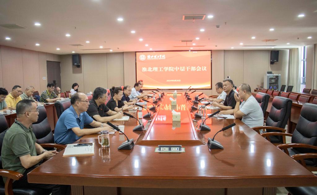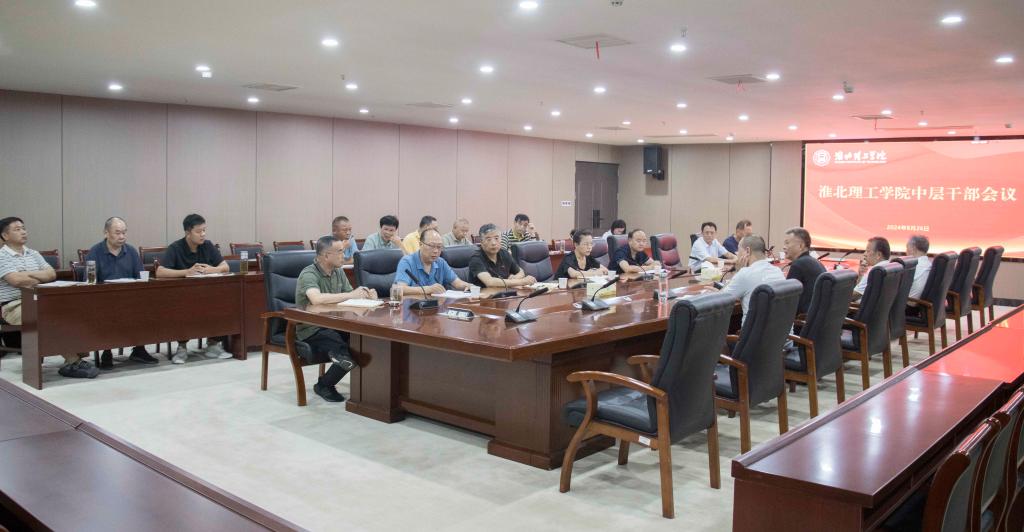 8月26日下午,学校于行政楼814会议室召开中层干部会议,研究部署2024年秋季学期开学有关工作。校领导杨兵、朱德顺、汪建利、郑来纪出席会议,各行政部门、各二级学院主要负责人参加会议,会议由党委书记朱德顺主持。