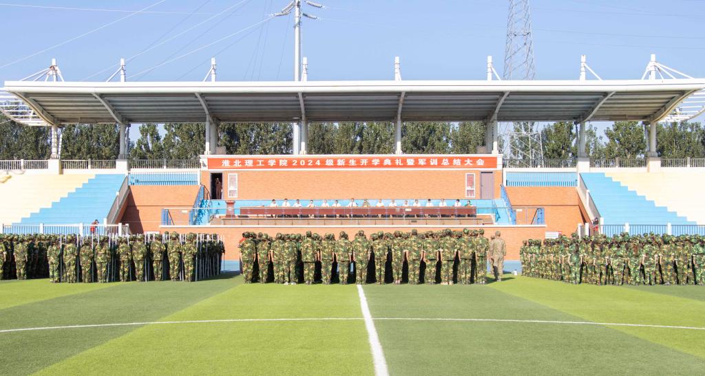 9月22日上午8时,学校2024级新生开学典礼暨军训总结大会在田径运动场上隆重举行。伴随着雄壮的国歌声,五星红旗在全校师生的注目礼中冉冉升起,开学典礼暨军训总结大会正式拉开帷幕。2024级全体新生身着迷彩装,以昂扬的精神面貌等待接受主席台的检阅,汇报训练成果。杜集区人武部部长胡后金莅临典礼现场。校党委副书记、校长杨兵,党委书记朱德顺,党委副书记、纪委书记、副校长汪建利,副校长郑来纪,各部门负责人、各二级学院院长、副院长及2024级全体辅导员参加典礼。典礼由汪建利主持。