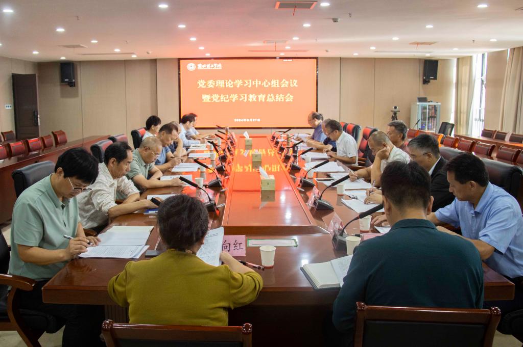 会议强调,党纪学习教育开展以来,学校党委把开展好党纪学习教育作为一项重要政治任务,坚持原原本本学、联系实际学,抓细抓实干部教育培训,开展警示教育推动以案促改促治,将党纪学习教育融入日常、抓在经常,推动党纪学习教育有力有序、走深走实、见行见效,在学纪、知纪、明纪、守纪方面取得实实在在的成效。会议要求,下一步学校党委要结合实际,把学习宣传贯彻党的二十届三中全会精神作为当前和今后一个时期的一项重大政治任务,紧紧围绕推进中国式现代化进一步全面深化改革的总体部署,不断深化党纪学习教育,切实学懂弄通做实党的创新理论,坚持党性党风党纪一起抓,用改革精神和严的标准不断激励党员干部担当作为,把党纪学习教育成果持续转化为推动学校事业高质量发展的强大动力。