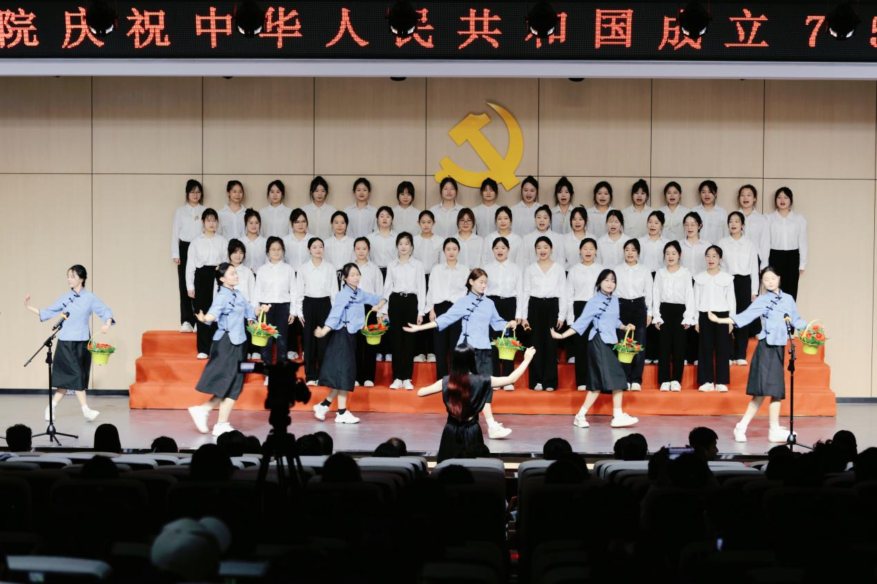 为庆祝中华人民共和国成立75周年,进一步激发全校师生的爱国热情,9月29日晚,学校庆祝中华人民共和国成立75周年歌咏比赛在行政楼报告厅隆重举行。校党委书记朱德顺,相关职能部门、二级学院负责人、各二级学院团总支书记、辅导员代表出席本次活动。