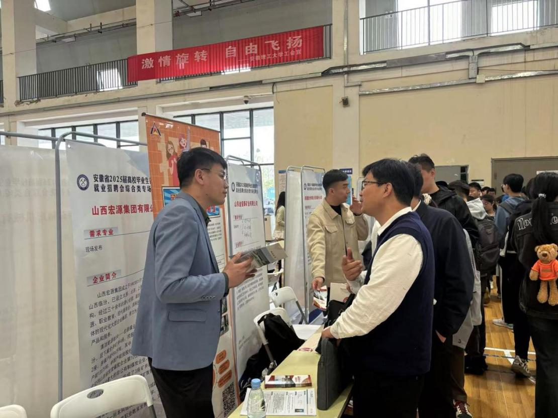 10月26日,安徽省2025届高校毕业生省级系列就业招聘会(综合类专场)暨安徽理工大学2025届毕业生秋季就业双选会在自强体育馆成功举办。我校机电与建筑工程学院院长张安宁、招生办主任、学生处副处长张拓等一行4人参加此次招聘会。