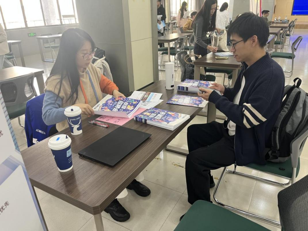与此同时,我校代表还参加了该校举办的2025届毕业生秋季校园大型双选会。此次双选会,安徽师范大学共邀请了来自全国多个省份的50余家优质企业,我校代表积极与企业进行对接洽谈。