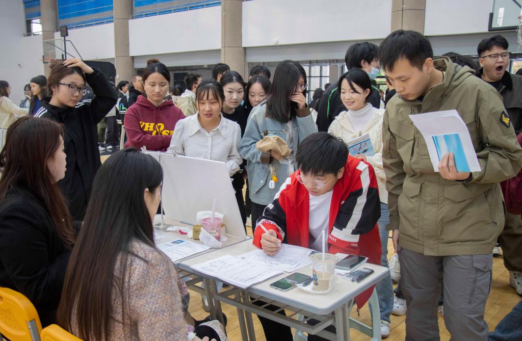 推介会结束后,在学校体育馆内举办了一场以电子商务专业为主的专场招聘活动。此次招聘活动不仅为学生们提供了与企业面对面交流的宝贵机会,也为电子商务行业的多家知名企业搭建了甄选优秀人才的平台。包括安徽小花褂服饰电子商务有限公司、安徽省好食鲜电子商务有限公司在内的10家领军企业,以及40余家来自不同行业的企业在现场设摊,与学生面对面交流,提供岗位资讯。现场气氛热烈,学生们积极咨询应聘,展现出对未来职业发展的热情和信心。