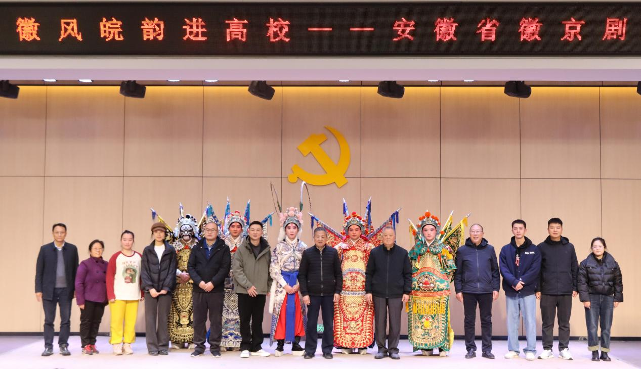 为进一步加强和改进新时代高校美育工作,提升大学生艺术修养和文化自信,有效推动中华优秀传统文化在大学校园传播与普及。11月27日,由中共安徽省委宣传部、安徽省教育厅、安徽省文化和旅游厅主办,安徽省徽京剧院承办的2024年校园大舞台“徽风皖韵进高校”专场演出在我校行政楼报告厅精彩上演。校党委书记朱德顺、副校长汪建利、郑来纪、徽京剧院演出中心团长张凯出席活动现场,学校相关部门负责人、各二级学院副书记、书记助理、团总支书记,共计500余名师生代表共同观看演出。