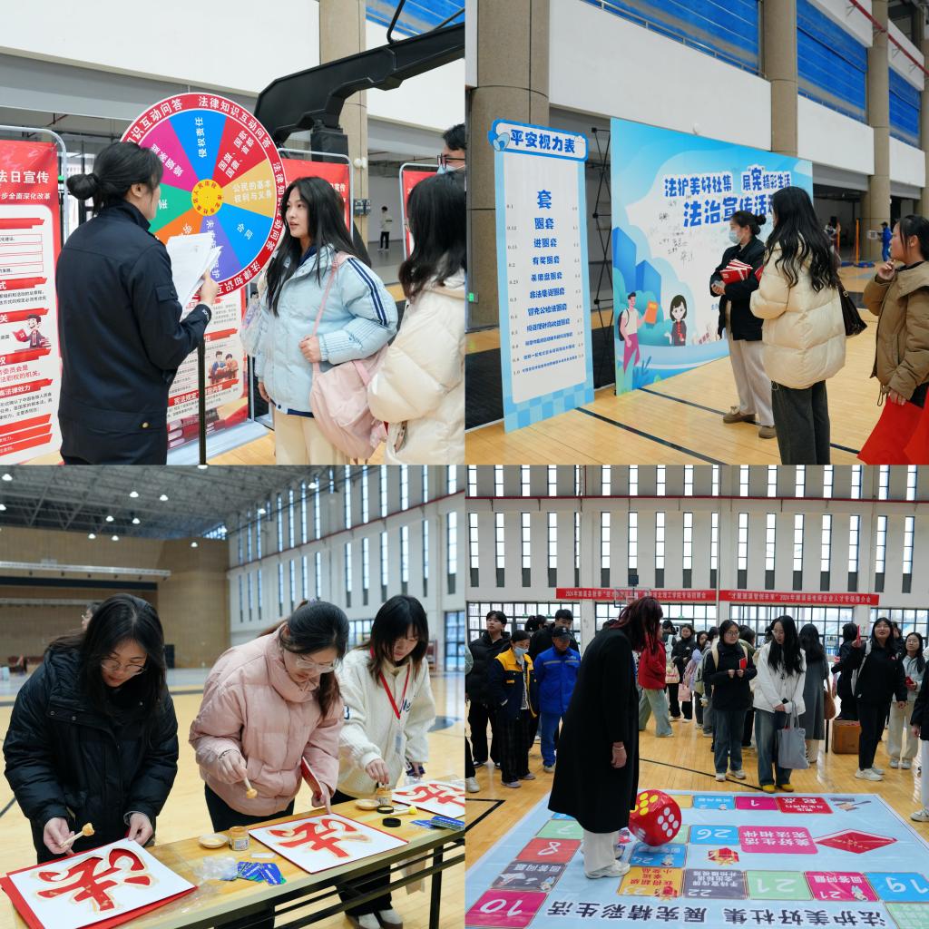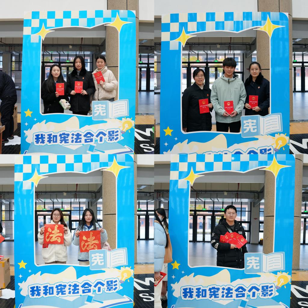 庭审结束后,杜集区人民法院创新推出的互动式普法活动更是吸引了众多同学的积极参与。签字墙、平安视力表、法律知识问答、大富翁法治游戏、法字拓印等环节将法律知识与游戏相结合,同学们在游戏中不仅收获了乐趣,更在无形中加深了对法律条文的理解和记忆。游戏结束,同学们手持宪法,在宪法打卡墙前拍照留念,增强了宪法认同感和法律信仰。