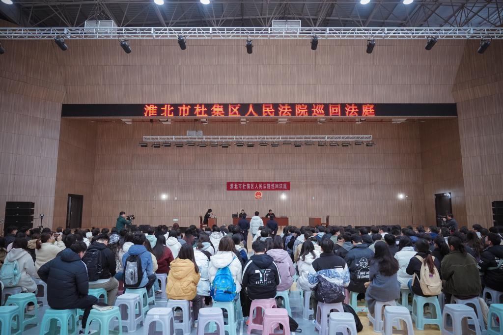 为进一步弘扬宪法精神,增强全校师生的法治观念,12月3日下午,杜集区人民法院走进我校开展“巡回法庭进校园”活动,为全校师生带来一场别开生面且意义深远的法治教育课。淮北市政协委员、副校长郑来纪出席活动,学生处、团委负责人,各二级学院副书记、书记助理、团总支书记及学生代表共计二百余人参加活动。
