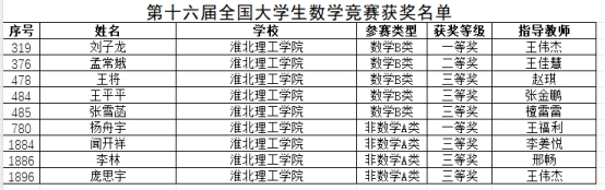 在第十六届全国大学生数学竞赛初赛中,淮北理工学院的参赛学子凭借着卓越的智慧、坚韧的毅力和对数学的炽热激情,斩获了一系列令人瞩目的佳绩,再度书写了学校学科竞赛的辉煌篇章。其中,在数学B类的赛道上,2022级数学与应用数学1班的刘子龙同学荣获省级一等奖;2023级数学与应用数学1班的孟常娥同学荣获省级二等奖;2023级数学与应用数学专升本4班王将同学、2022级数学与应用数学4班王平平同学和2023级数学与应用数学3班的张雪菡同学荣获省级三等奖。在非数学A类的赛道上,2023级自动化1班的杨舟宇同学荣获省级一等奖;2022级计算机科学与技术4班的闻开祥同学、2023级电子信息工程1班的李林同学和2022级机械设计制造及其自动化1班的庞思宇同学荣获省级三等奖!