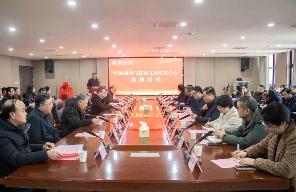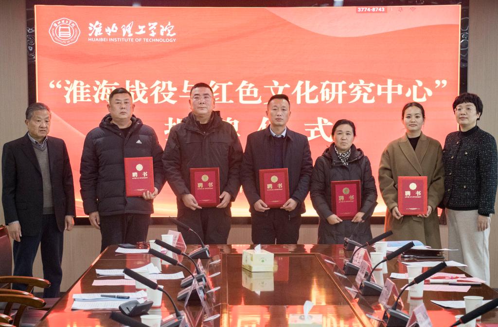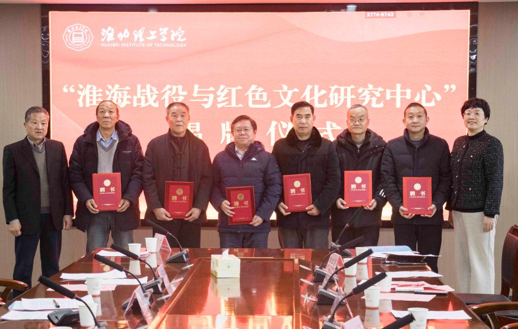 12月24日下午,淮北理工学院与中共淮北市委党史和地方志研究室共建“淮海战役与红色文化研究中心”举行揭牌仪式。淮北市委副书记孙艳辉、副市长姚珂、市委副秘书长谢谢、市政府副秘书长王江等市委市政府领导,中共淮北市委党史和地方志研究室主任张红,淮北理工学院校领导及相关部门和二级学院主要负责人,萧县蔡洼、永城市陈官庄,濉溪县临涣文昌宫、小李家、双堆集等淮海战役纪念馆负责人,“淮海战役与红色文化研究中心”聘请研究员及学校师生代表共同出席揭牌仪式,淮北理工学院校长杨兵主持。