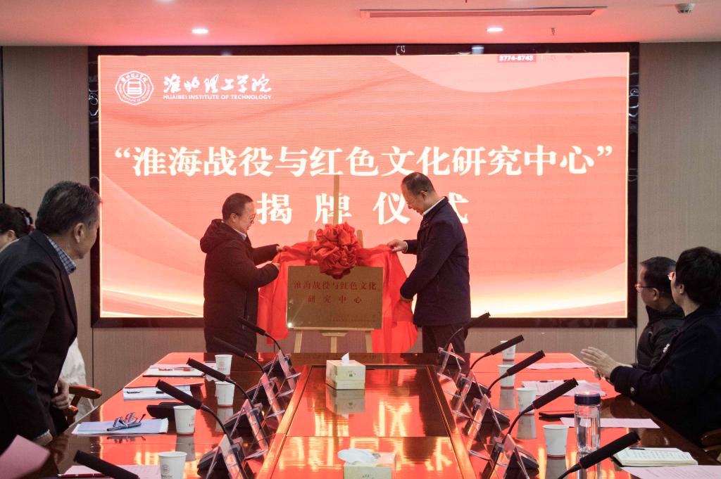 淮北市委副书记孙艳辉、淮北理工学院董事长查东辉共同为淮海战役与红色文化研究中心揭牌。