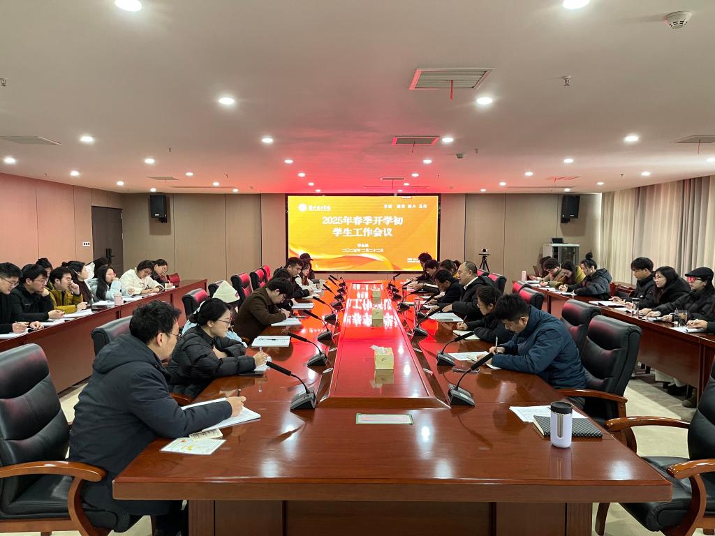 2月22日上午,我校在行政楼814会议室召开2025年春季开学初学生工作会议,副校长郑来纪,学生处、招生办、团委负责人,各二级学院党总支副书记、书记助理、团总支书记及全体辅导员参加会议。会议由郑来纪主持。
