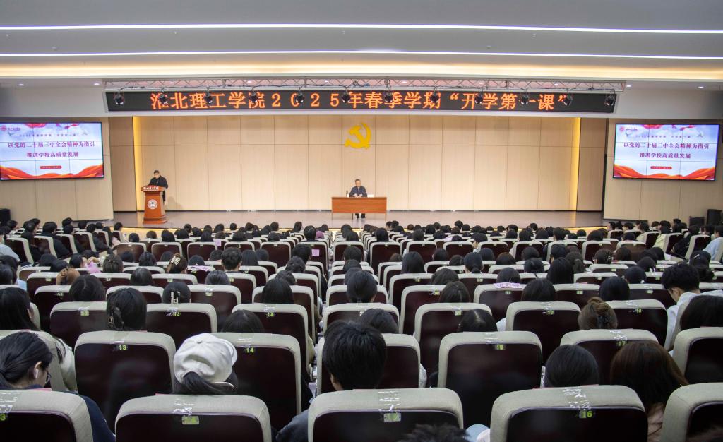 3月12日下午,淮北理工学院2025年春季学期“开学第一课”在报告厅开讲,校长杨兵授课。相关校领导,全体辅导员,学生党员代表,学生入党积极分子代表参加,授课活动由教务处副处长秦品德主持。